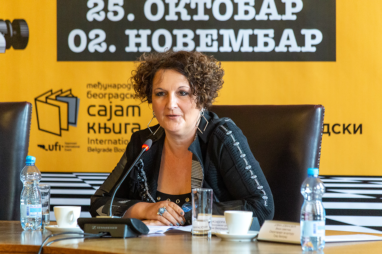 Prvu pres-konferenciju elokventno i elegantno, sa mnogo duha, vodila je PR 68. Sajma knjiga Sara Ivković.