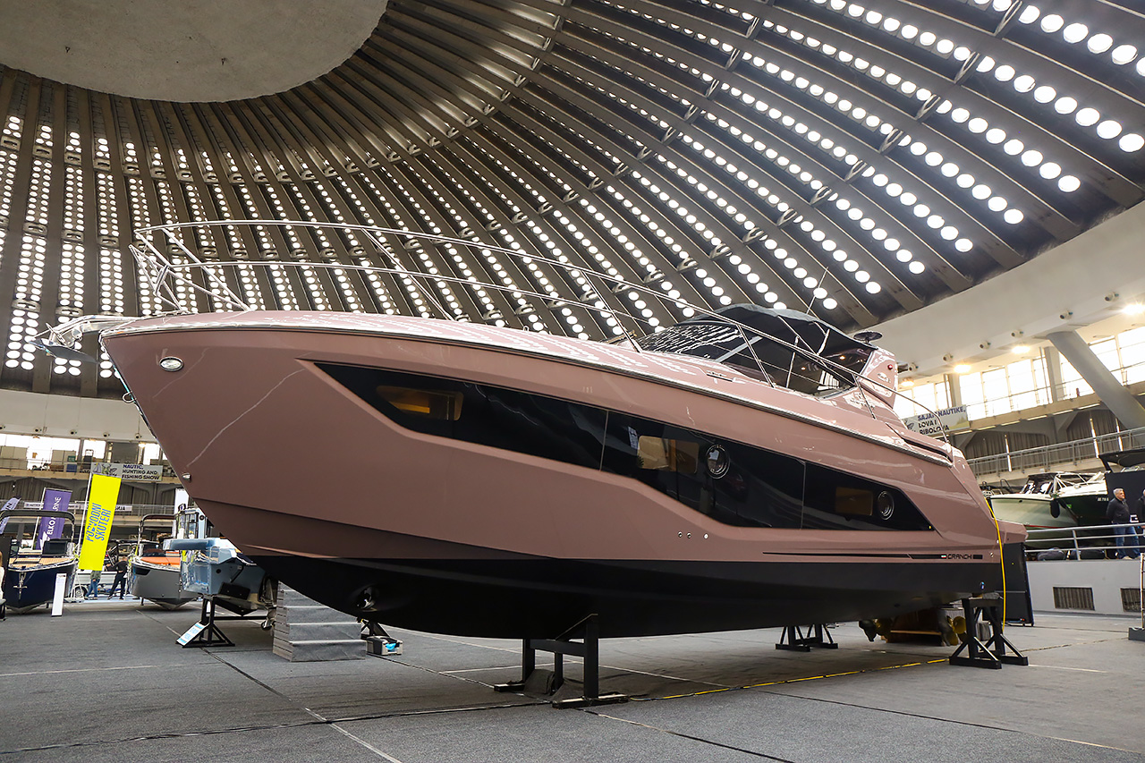 Čim uđete u halu 1 prvo što ćete primetiti je, upravo ovo, luksuzno plovilo. Pažnju privlači, kako gabaritom, tako i sofisticiranim dizajnom i veoma specifičnom bojom.